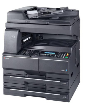 MFP (impressora, scanner, copiadora) para um escritório grande impressão a laser em preto e branco Capacidade de entrada (padrão/máx.): Padrão: 1.100 folhas, Máximo: 4.100 folhas Capacidade de saída (padrão/máx.): Padrão: 250 folhas, Máximo: 3.000 folhas Fontes de papel (padrão/máx.): Padrão: 2 bandejas + 1 MPT, Máximo: 4 bandejas + 1 MPT Formato de impressão A3 máx. (297 × 420 mm) Tamanho máx. de impressão: 320 × 450 mm LCD colorido impressão frente e verso Interfaces: Ethernet (RJ-45), USB Kyocera TASKalfa 3212i usa o kit de toner TK-7125